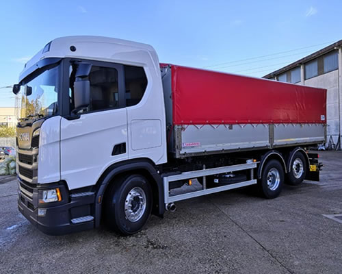 Tutti i mezzi di LE.MA.O Trans sono dotati di scarico trilaterale sia su motrice che su rimorchio